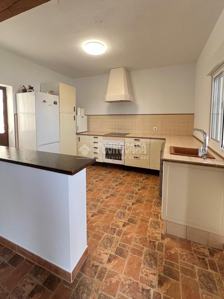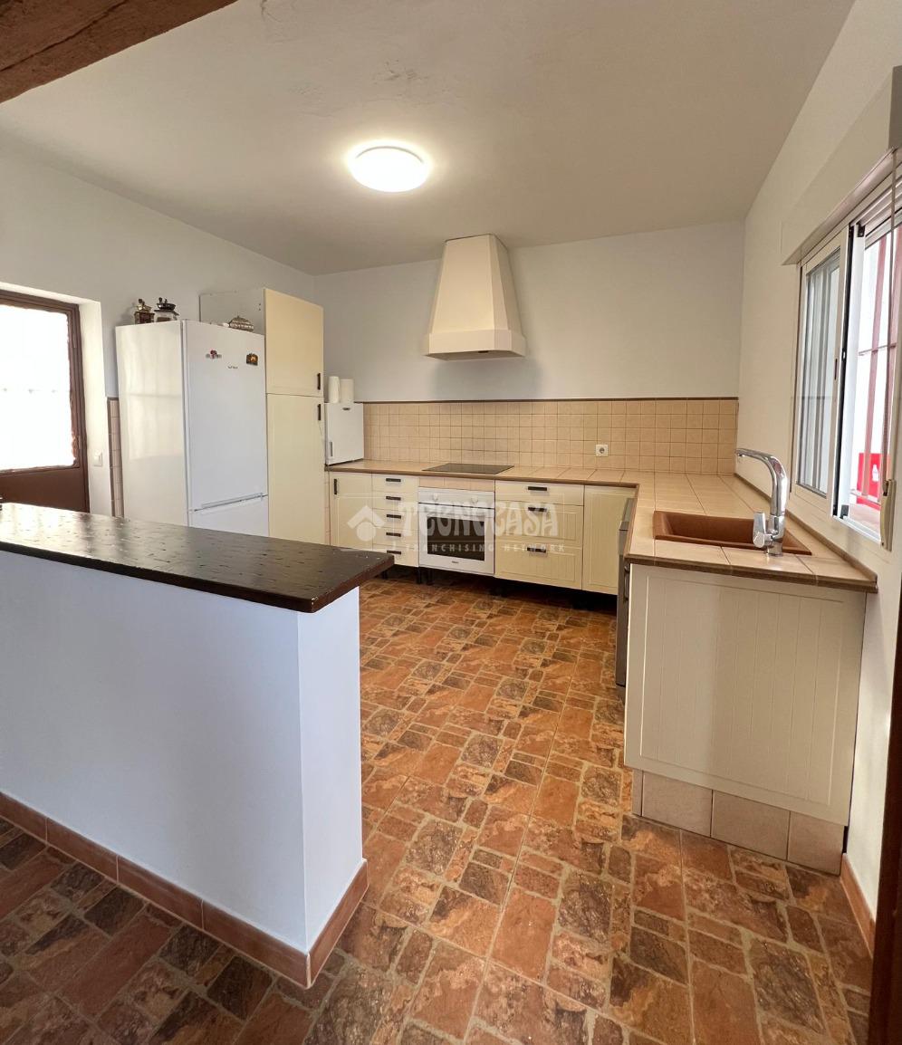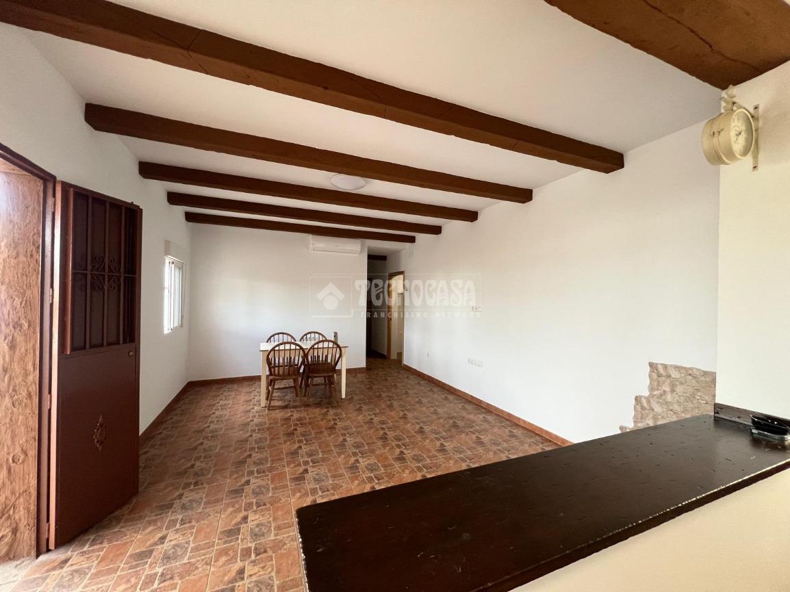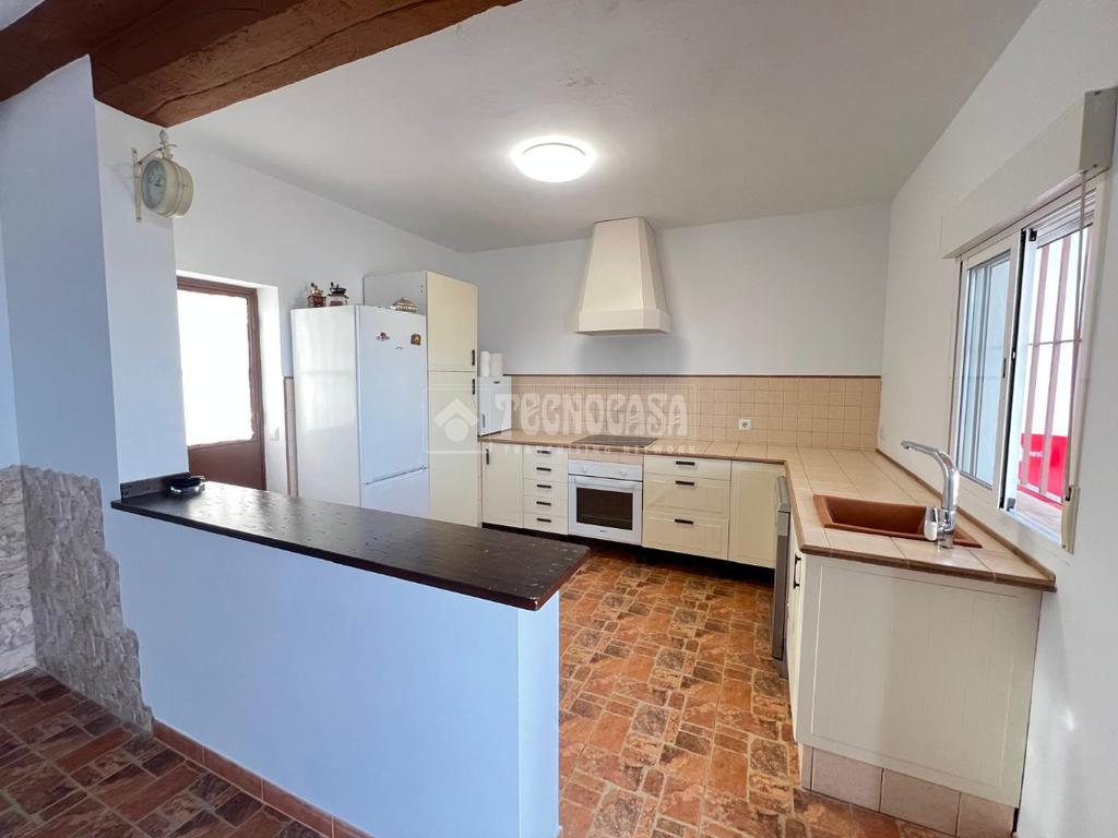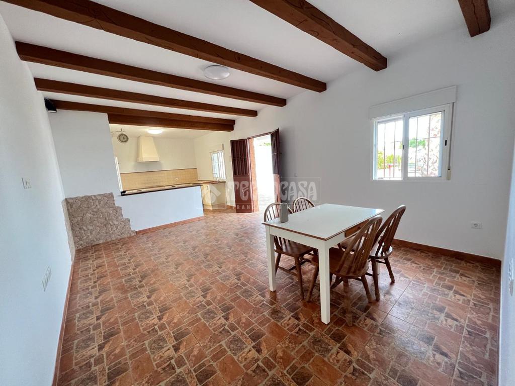 En ella nos encontraremos con una casa consolidada de unos 80m2, compuesta por un amplio y luminoso salón, una gran cocina amueblada y equipada, dos dormitorios, un baño con placa de ducha y un porche delantero.