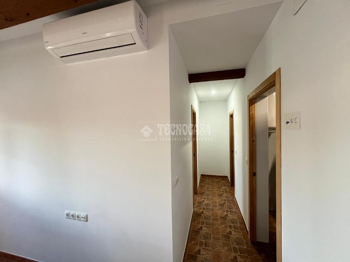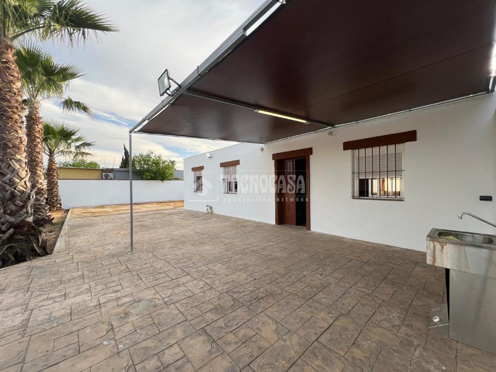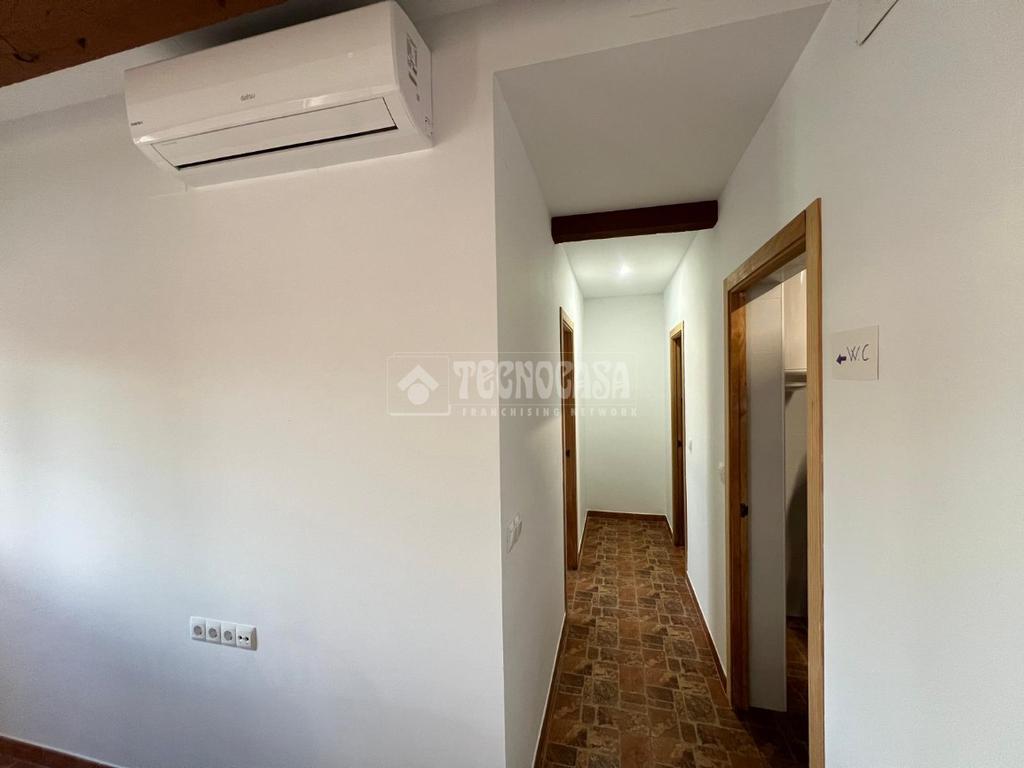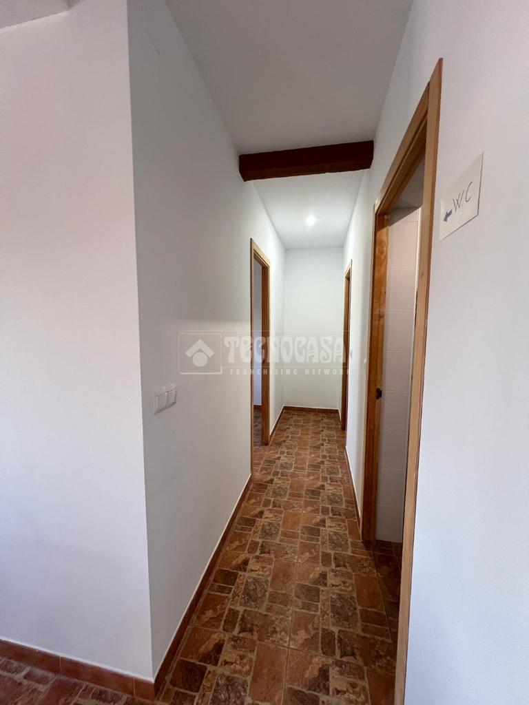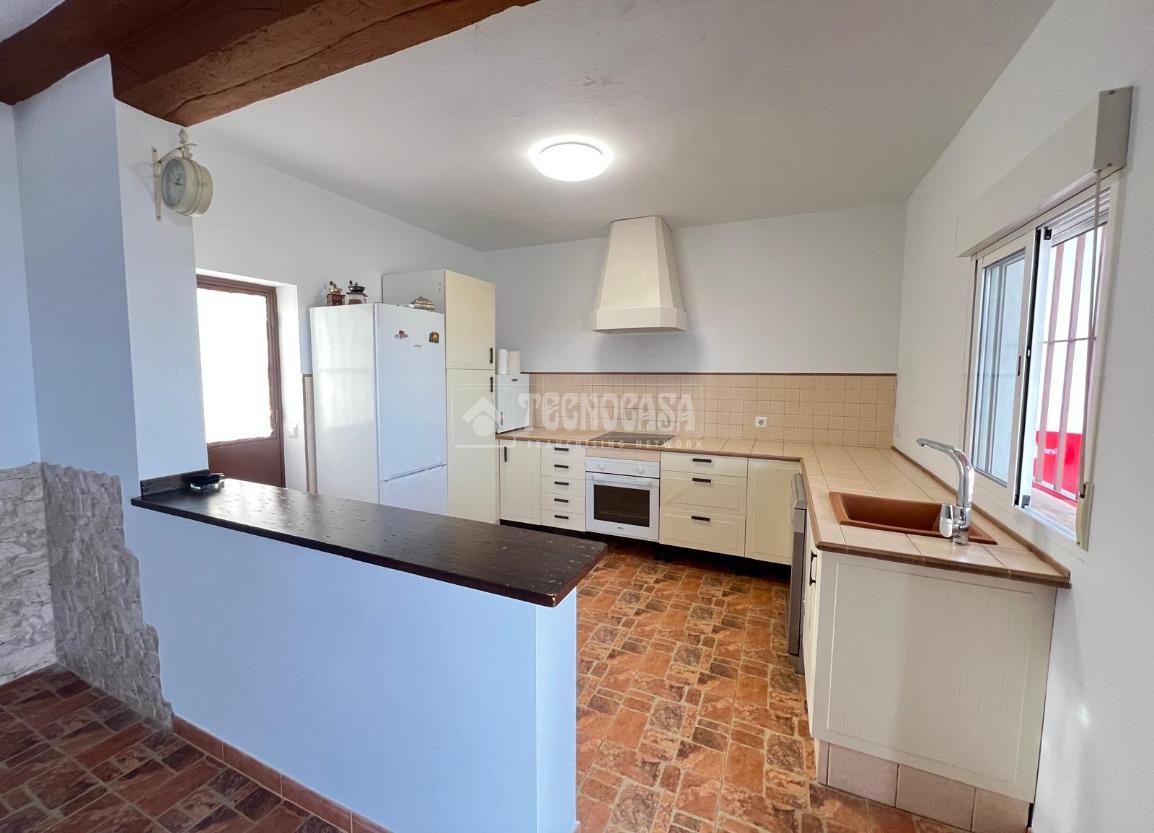 En ella nos encontraremos con una casa consolidada de unos 80m2, compuesta por un amplio y luminoso salón, una gran cocina amueblada y equipada, dos dormitorios, un baño con placa de ducha y un porche delantero.